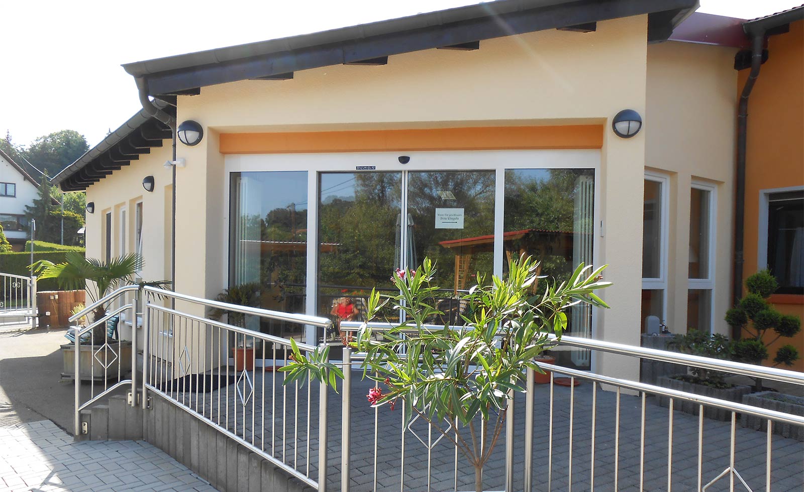 Wir bieten unseren Bewohnerinnen und Bewohnern eine Oase der Ruhe. Das Haus ist umgeben von einer gepflasterten Außenanlage, die mit ihren vielen Sitzplätzen zum Entspannen einlädt. Die Sitzplätze sind teilweise überdacht, um im Sommer wohltuenden Schatten zu bieten.